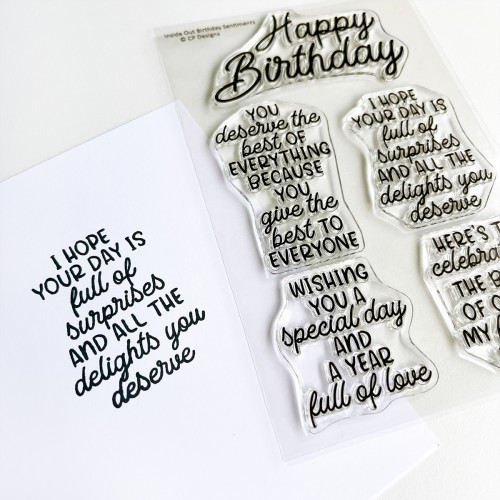 Meet our Inside Out Birthday Sentiments Stamp Set! This set was designed with thoughtful sentiments to stamp inside of your card creations. Paired with a large "happy birthday" stamp tell someone "wishing you a special day and a year full of love"! This sentiment set features a modern pairing of script and block fonts and are perfect for inside and out!