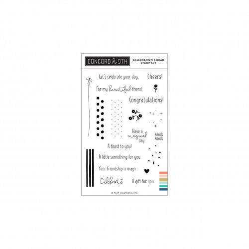 De Celebration Squad-stempelset zit boordevol attente en feestelijke uitspraken en verschillende stempels met patronen om op kaarten en andere projecten te gebruiken. Coördineert met de Celebration Squad Dies. 4 "x 6". 20 stempels.