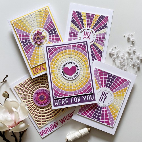 Een set van 4 ronde sentiment-stansen die werken met de Round & Round Background-snijmal of op zichzelf.