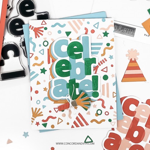 De Accordion Birthday Stamp Set bevat teksten en confetti-accenten om te gebruiken bij de feestelijk..