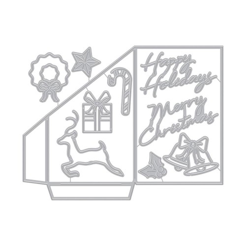 Verpakking bevat verschillende snijmallen om een cadeaubonhouder te maken met verschillende decoratieve elementen die je ook voor kaarten en andere producten kan gebruiken. 10 snijmallen in totaal.