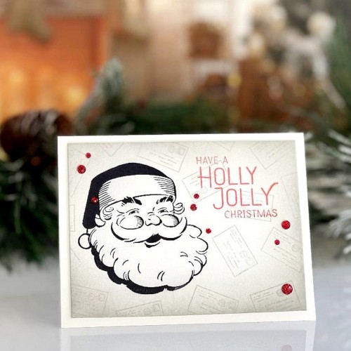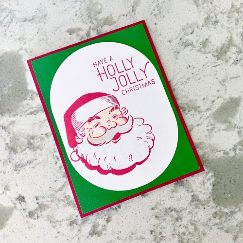 Holly Jolly Stanta Press Plate & Die Set komt uit de More BetterPress Christmas Collection met twee persplaten met een lief en vrolijk kerstmangezicht en het perfecte sentiment, een geweldig paar! Het sentiment heeft een bijpassende matrijs om uit te snijden en te laten opvallen door schuimkleefstof te gebruiken. De Kerstman maakt ook een groot accent op een label! Beïnkt de platen met BetterPress-inkt en druk deze tegen het BetterPress Cotton Card-paneel en de vellen voor een helder boekdrukontwerp.