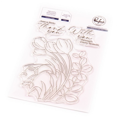 Laat je projecten tot bloei komen met de Timeless Tulips clear stamp set, ontworpen door Whitedaisy by Miza. De sierlijke tulpen vormen een prachtige blikvanger, en de met de hand getekende lijnen zijn perfect om in te kleuren, te embossen of te gebruiken met aquareltechnieken.