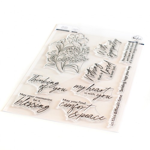 Set van 6 x 8 fotopolymeer doorzichtige stempels ontworpen door Kaitlin Sheaffer. Gemaakt om te coördineren met de With Sympathy layering stencil set, With Sympathy hot foil plate en With Sympathy die set. Apart verkrijgbaar.