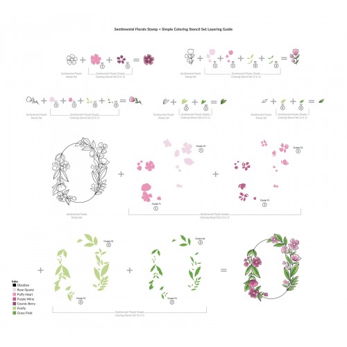 Dit is een bundel van Sentimental Florals Stamp Set, bijpassende stansen en kleursjabloon.