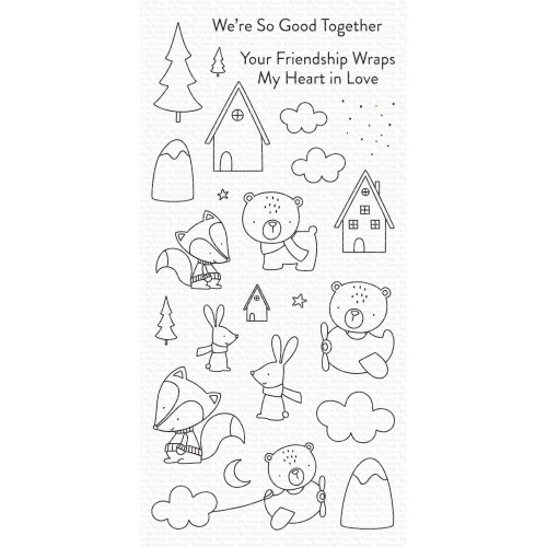 Je moet wel houden van een set die veelzijdig genoeg is om te gebruiken voor alles van "Welkom baby" tot "Gefeliciteerd met jullie nieuwe huis" - dat is deze set! De tekstjes gaan over vriendschap, maar de schattige critters, kleine huisjes en omgevingselementen maken een enorme diversiteit aan thema's mogelijk. Door de eenvoudige tekenstijl lenen de afbeeldingen zich tot styleren, kleuren en andere technieken, dus laat je verbeelding de vrije loop met deze onweerstaanbare set!