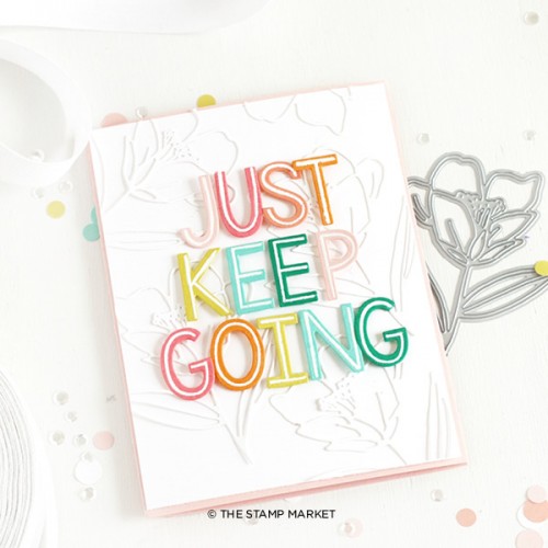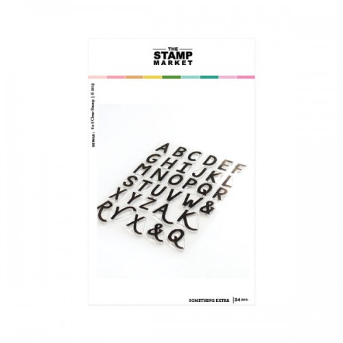 Deze clear stempelset meet 6 x 8 inch (15 x 20,3 cm) en bevat 34 afbeeldingen. Er zijn twee coördinerende producten beschikbaar: Something Extra Inline Alphabet en Something Extra Alpha Dies.