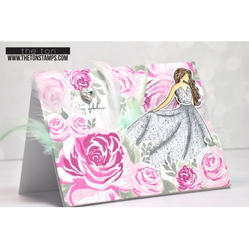 Word de ster van de avond met een echt prinsessenkleed! Deze haute couture galajurk kan je instempelen of heat embossen met de aparte invulstempel voor een sprankelend resultaat.