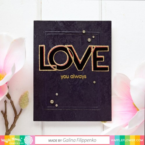 All you need is love! Deze combo set bevat een stempelset met LOVE randen alsook de invulling, en bijpassende snijmallen om de rand uit te snijden of het geheel uit te snijden! Deze strakke stijl leent zich tot zeer veel technieken zoals waterkleur, resist embossing en meer!